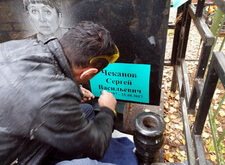 Гравировка новой надписи на кладбище